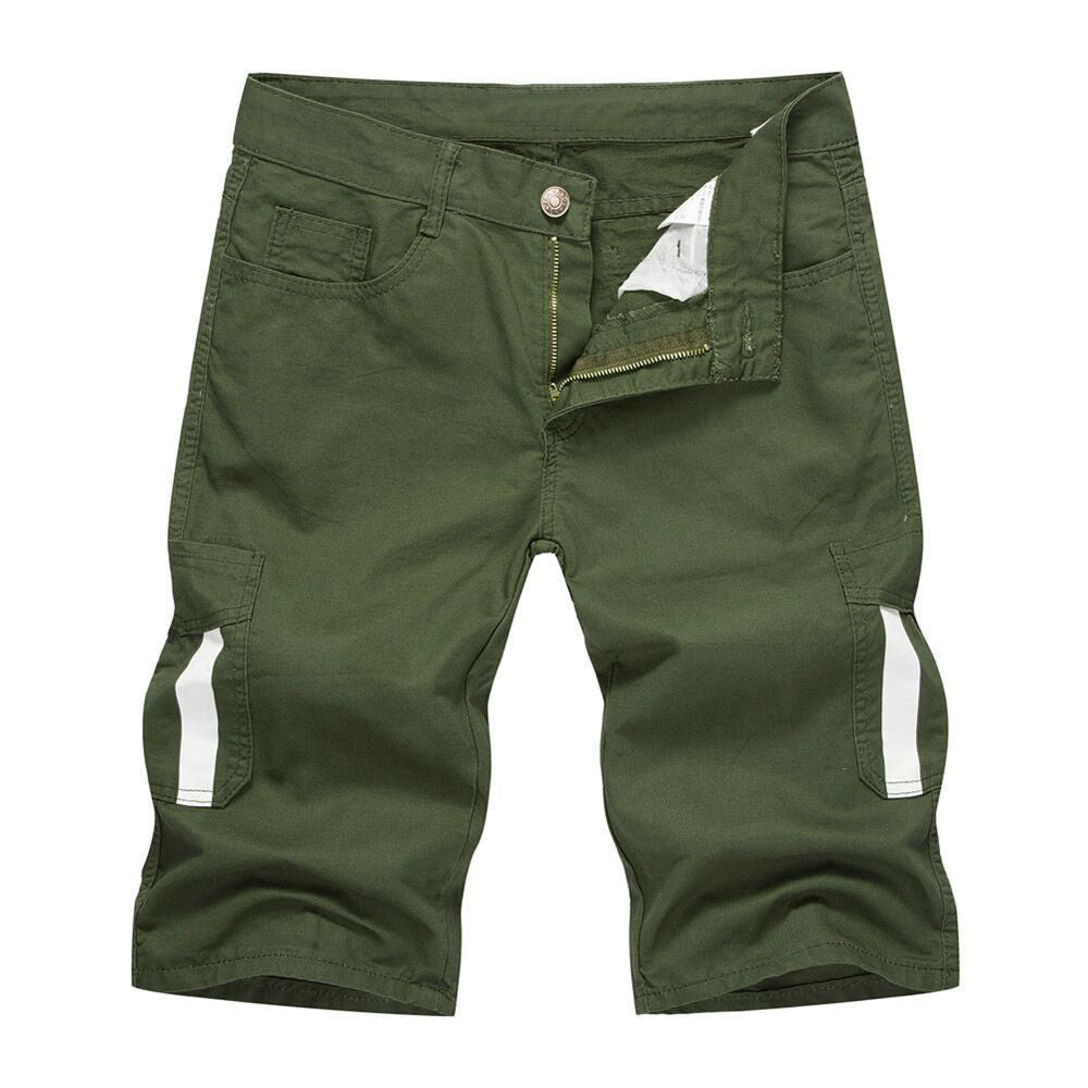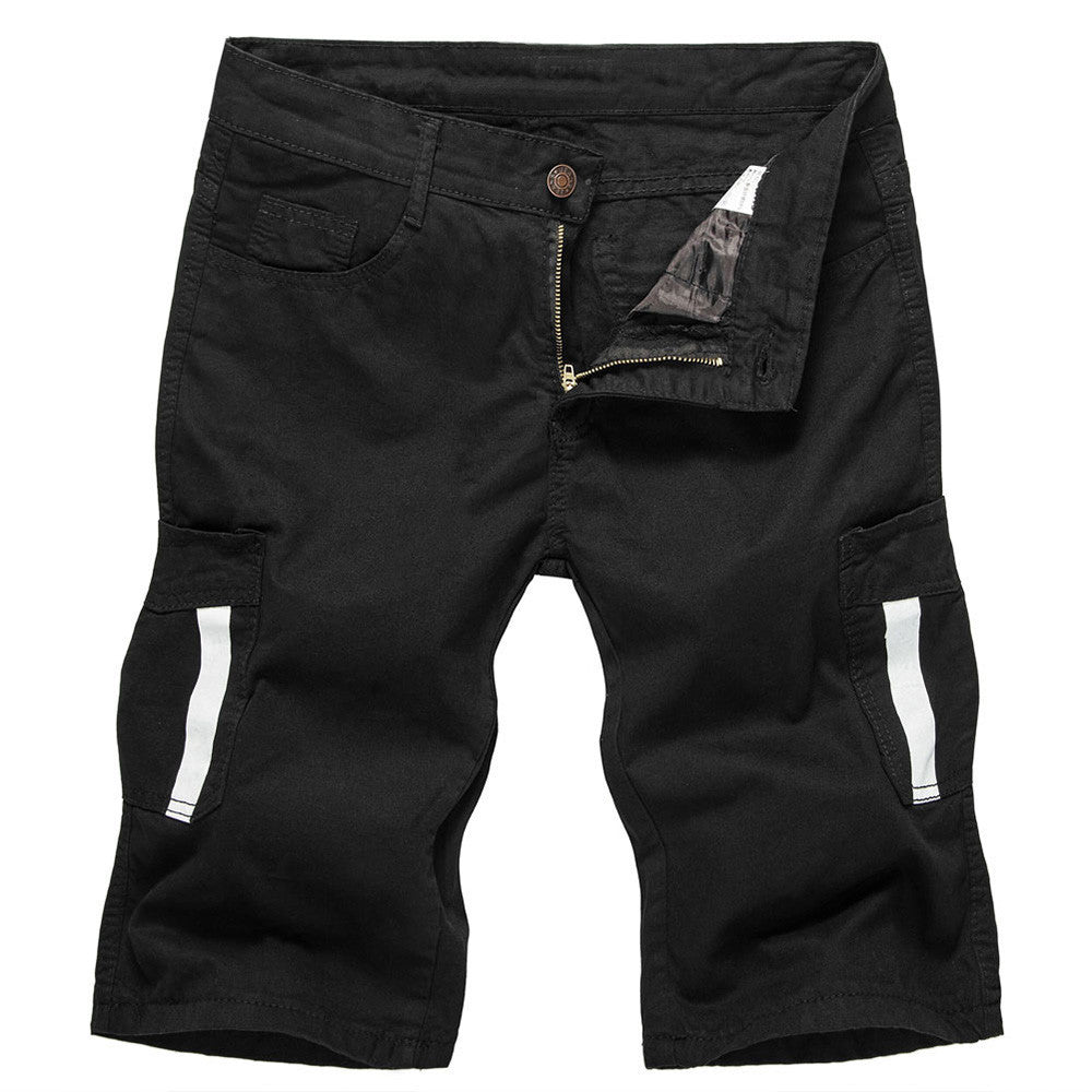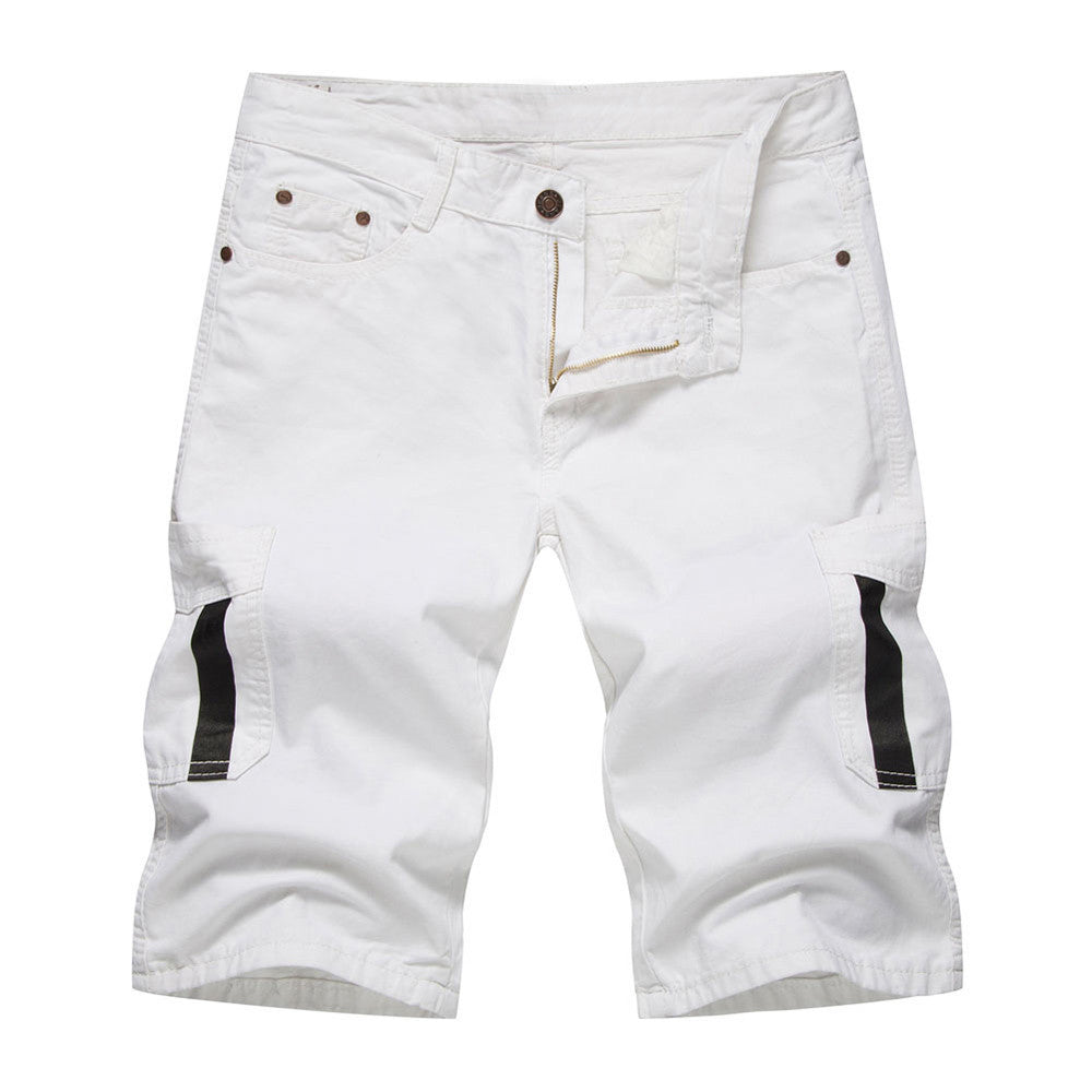 Summer Male Pants Casual Loose Stretch Cropped Pocket Denim Pants Overalls